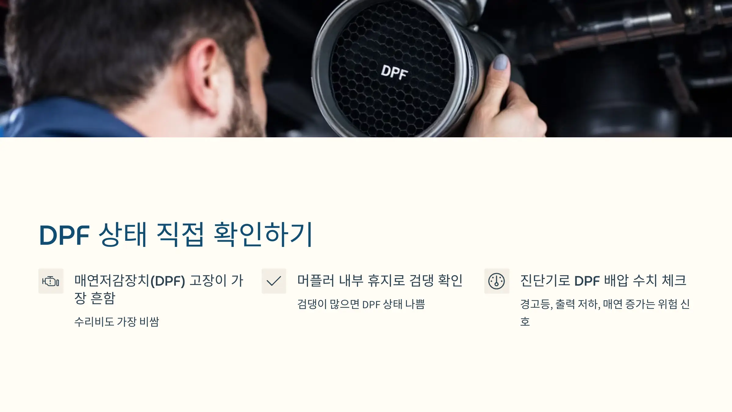 ① DPF(매연저감장치)는 디젤 차량에서 가장 문제가 자주 생기고, 수리비도 가장 비쌉니다.