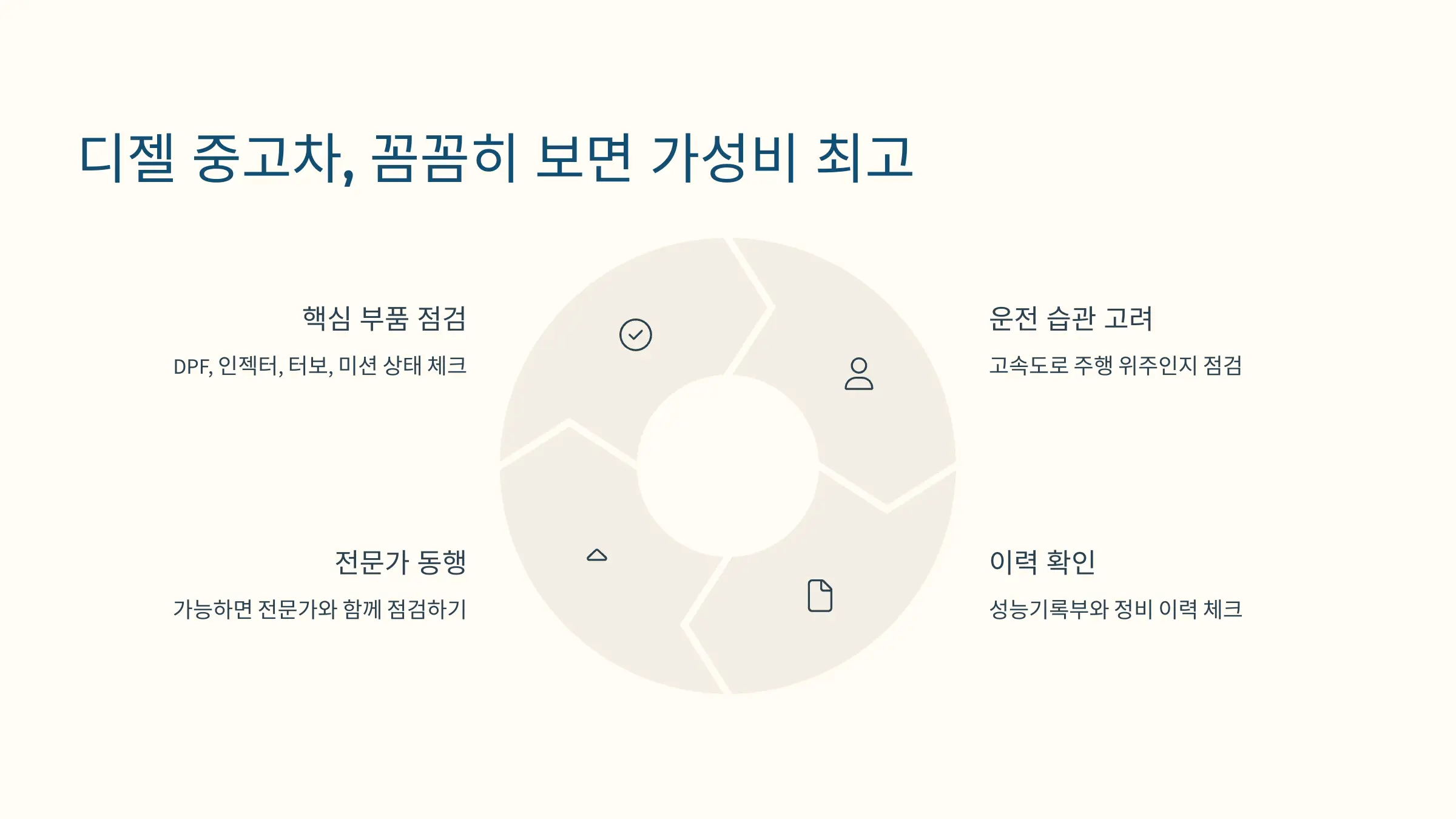 DPF, 인젝터, 터보, 미션 상태까지 반드시 점검하고, 자신의 운전 습관과 맞는지 충분히 고려한 후 결정하세요.