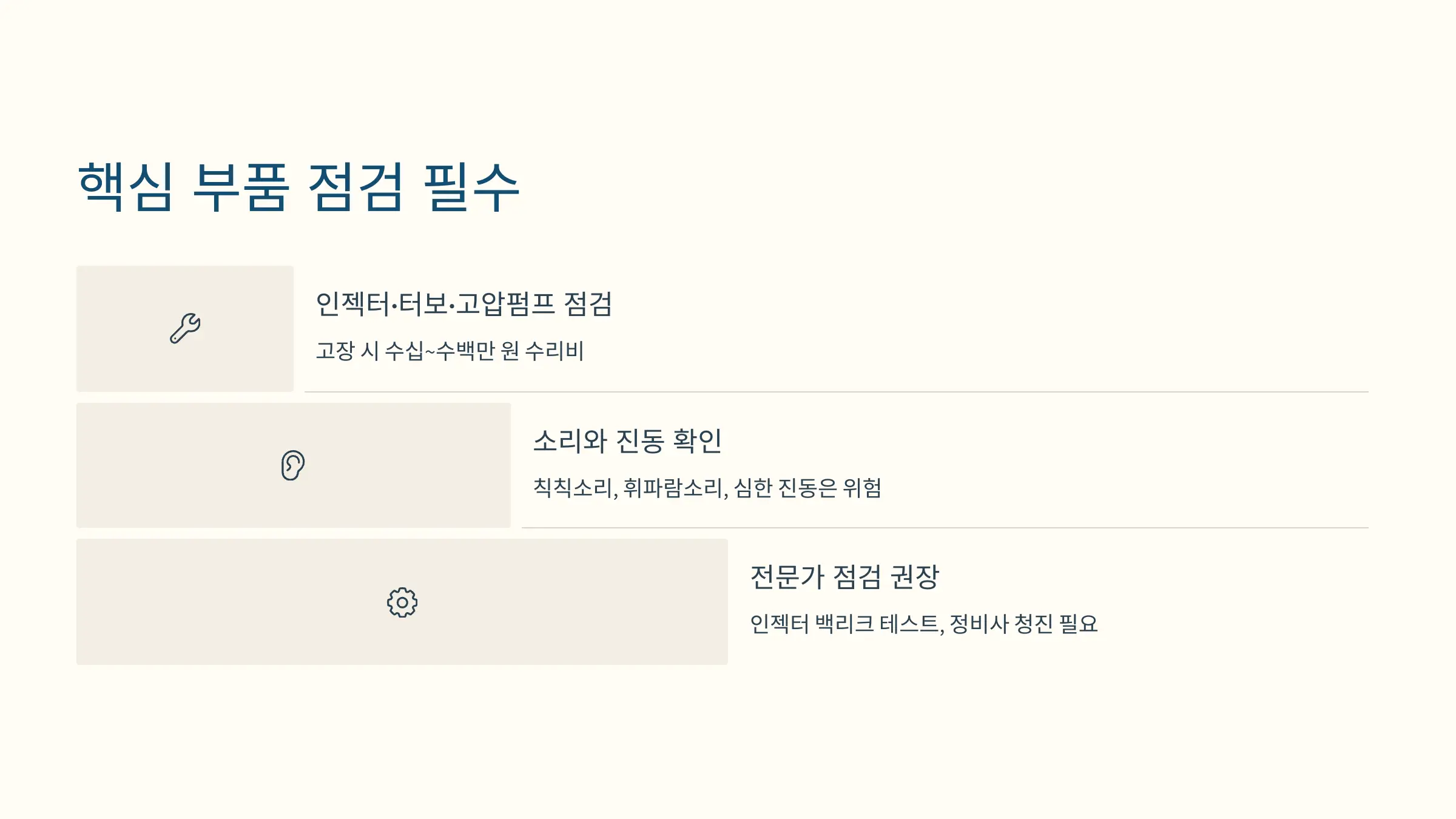 2. 인젝터·터보·고압펌프 점검은 필수