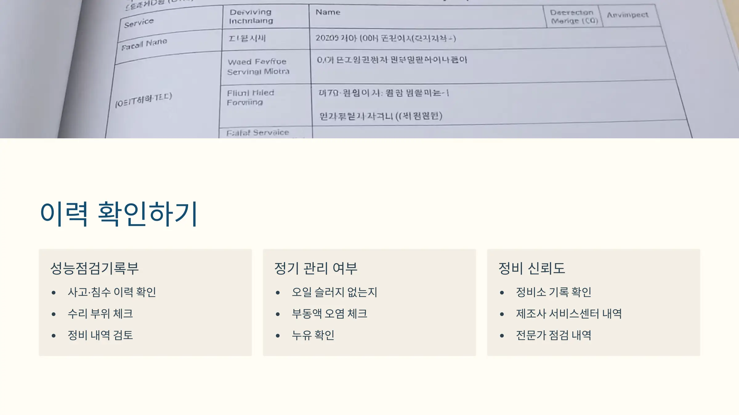 ③ 정비소 기록이나 제조사 서비스센터 내역이 있다면 신뢰도가 높습니다.