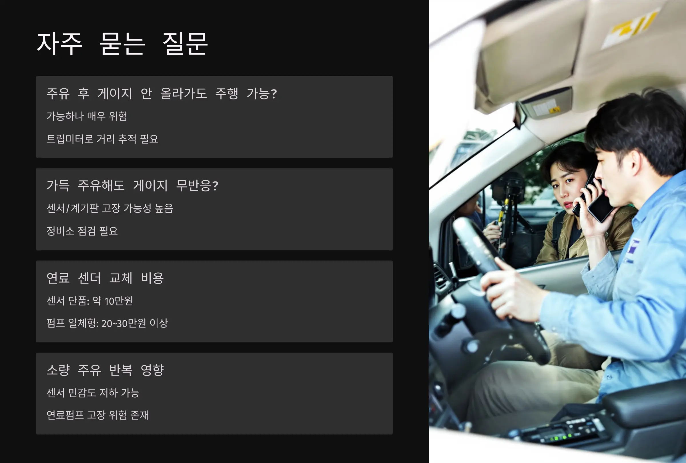 “게이지가 안 올라가면 가장 좋은 방법은 주유를 가득 넣어보는 것입니다.”