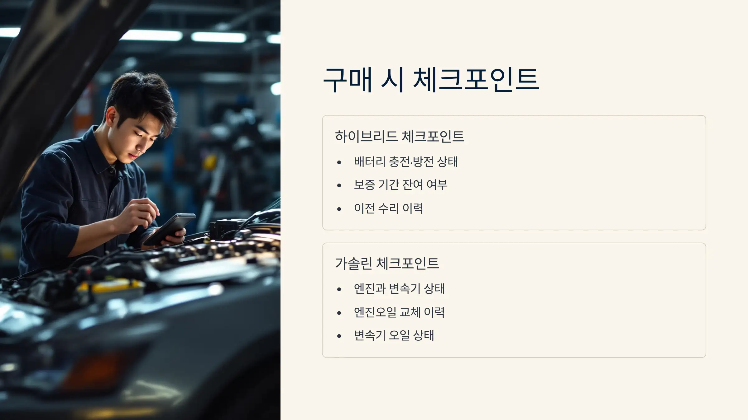 하이브리드 중고차 구매 시에는 반드시 배터리 상태를 점검해야 합니다.