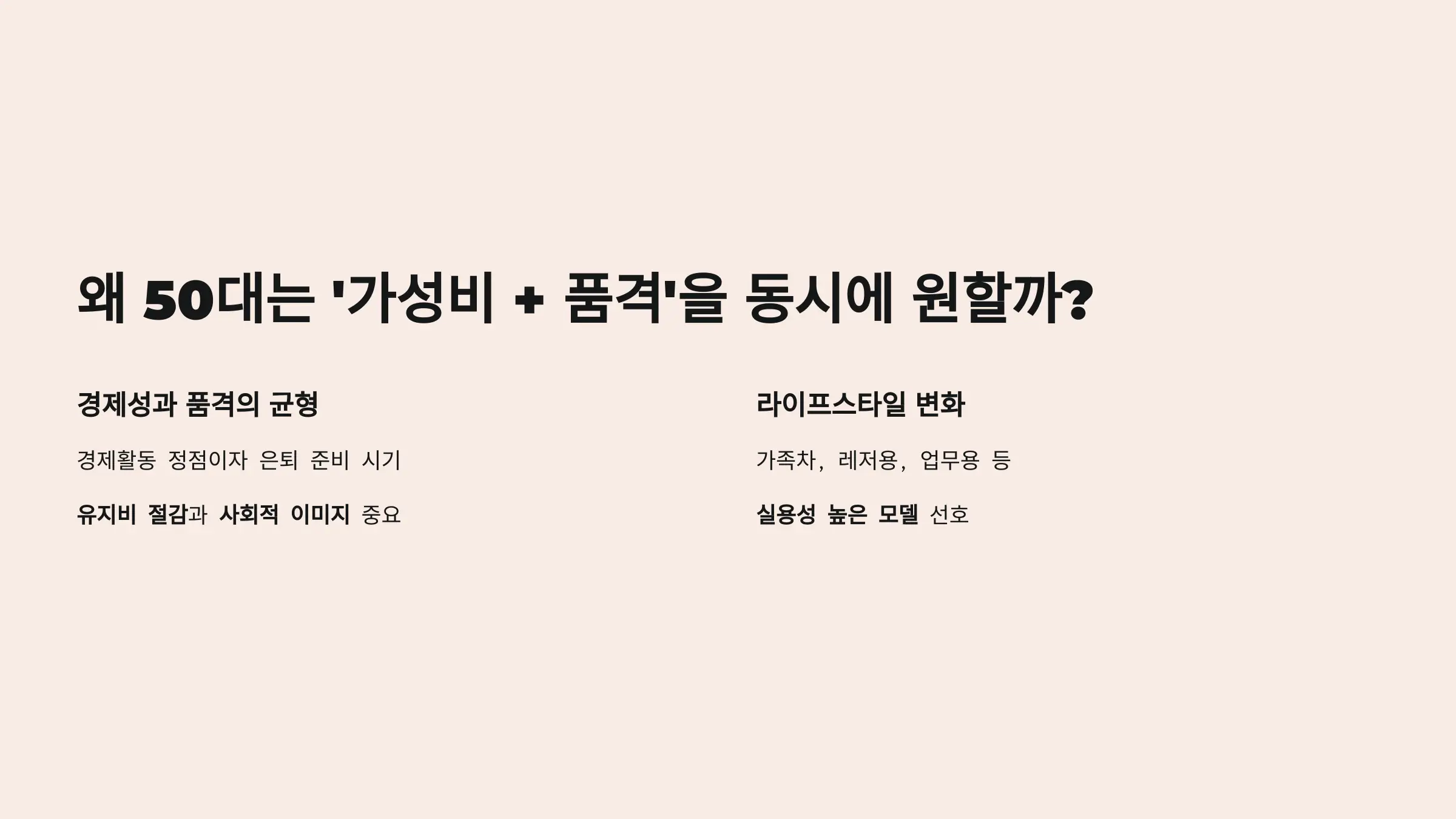 1. 왜 50대는 '가성비 + 품격'을 동시에 원할까?