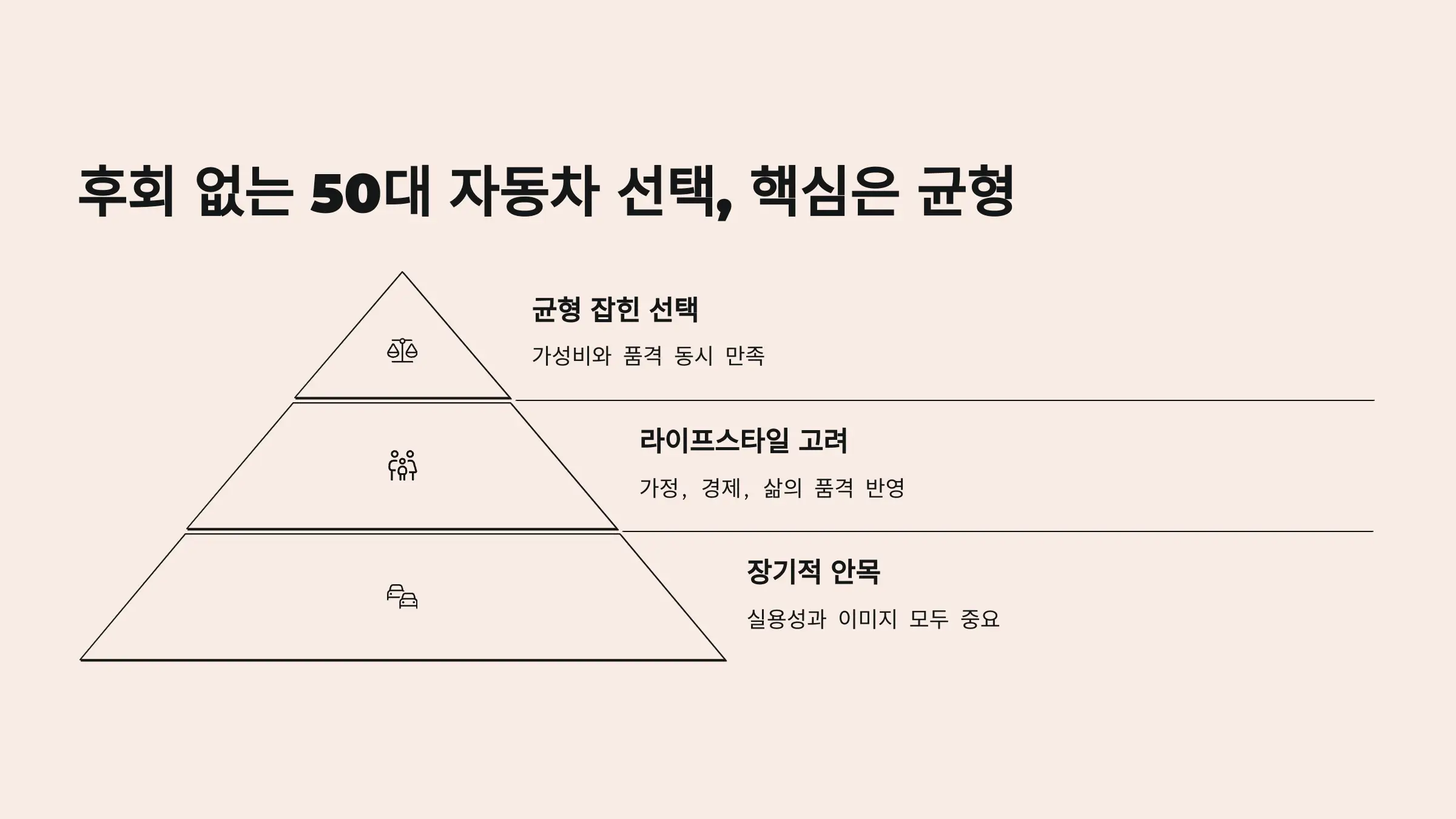 마무리: 후회 없는 50대 자동차 선택, 핵심은 균형