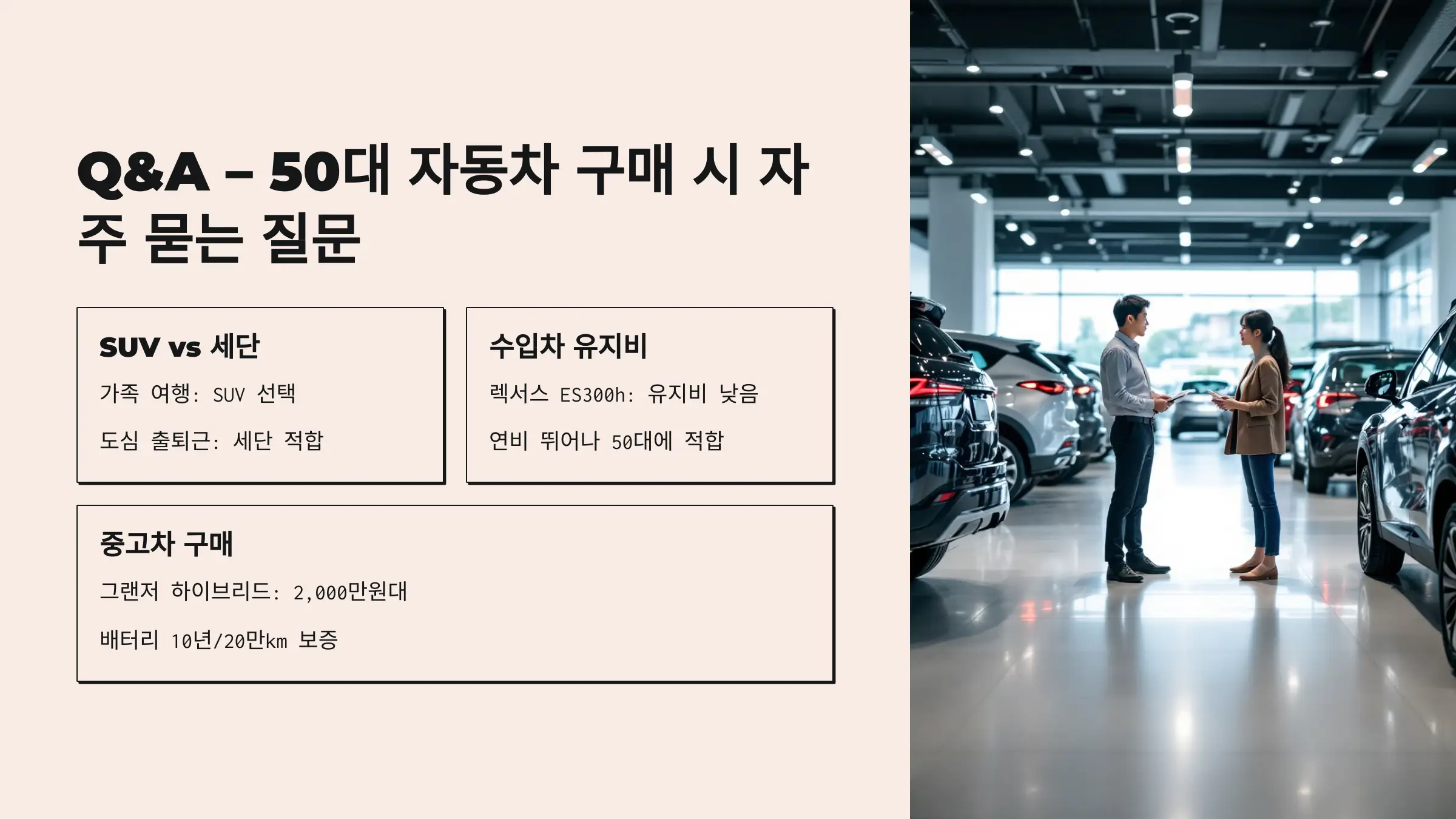 5. Q&A – 50대 자동차 구매 시 자주 묻는 질문