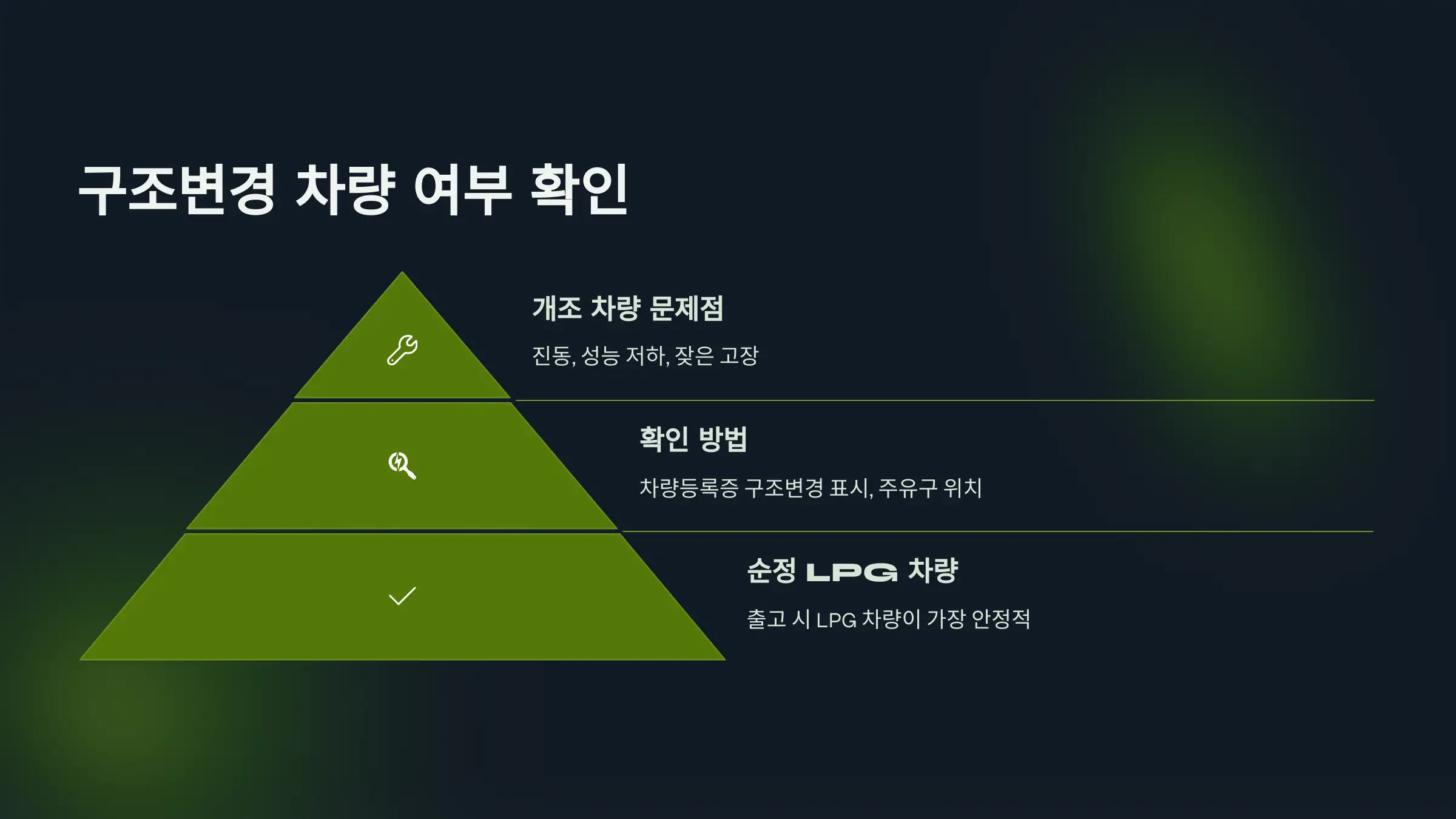 → TIP: 성능점검기록부에 'LPG 계통' 관련 이상 여부가 표기되므로 반드시 확인하세요.