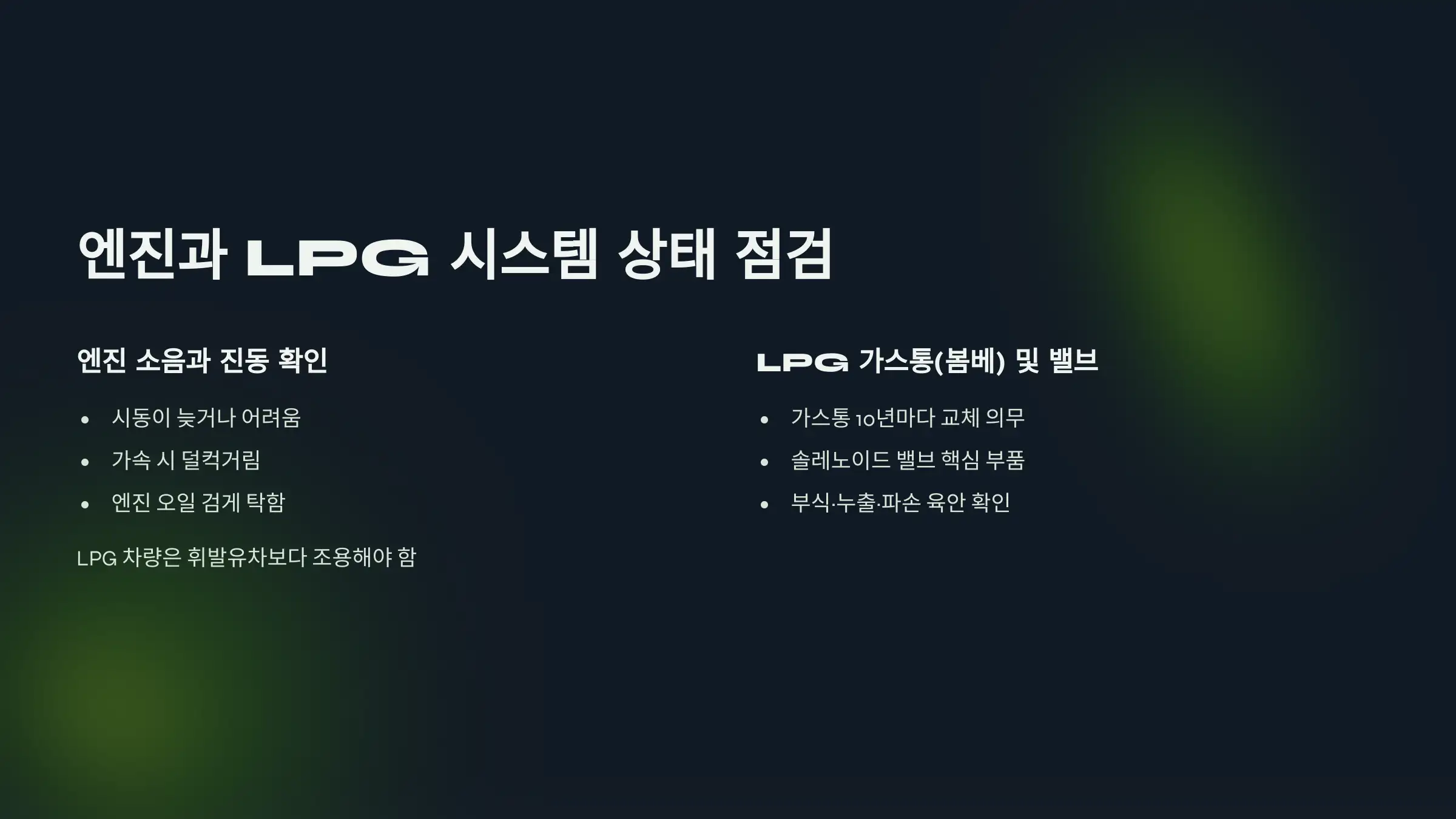 2. 엔진과 LPG 시스템 상태 점검