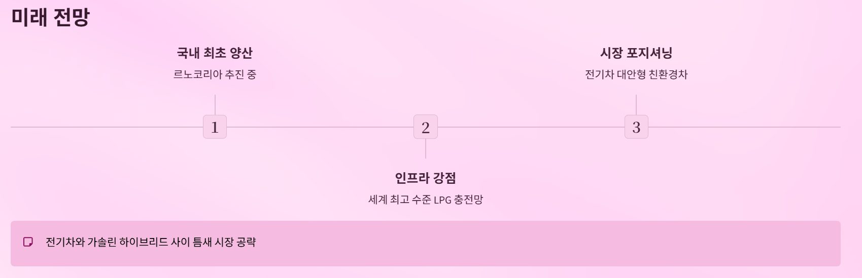 앞으로 전기차와 가솔린 하이브리드 사이의 틈새시장을 메우며, ‘전기차 대안형 친환경차’로 자리 잡을 가능성이 큽니다.
