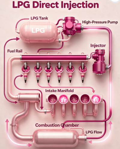 • 직접 분사 방식 : 액체 상태의 LPG를 고압으로 실린더 안에 직접 분사해 연소 효율을 극대화.